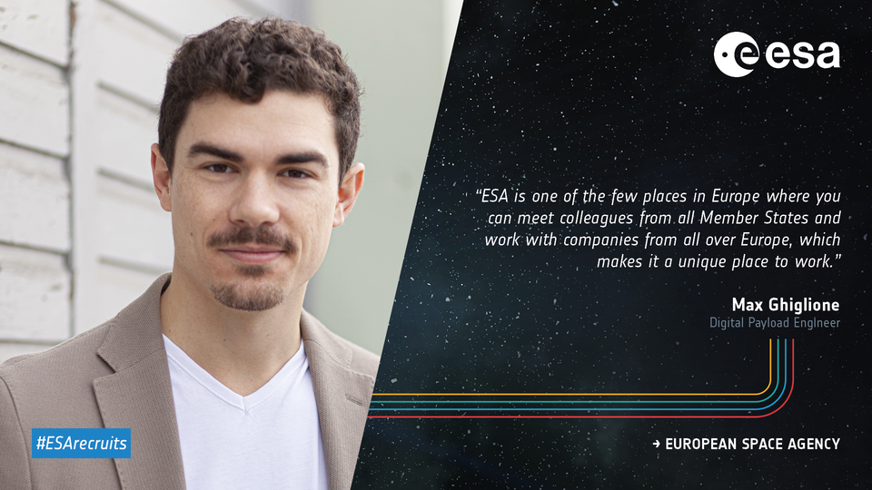 Curious to know what life at ESA is like? We will be bringing you interviews with people from across the Agency to share their first-hand experiences of life at ESA. First up is Max Ghiglione, based at ESTEC, who talks about relocating to a new country to work for ESA, the path that led him to his current role, his typical day at ESA and more!