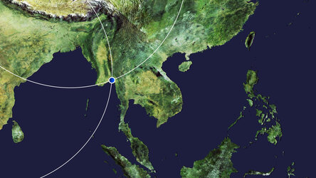 The city of Yangon is visible in the bottom-left of the image, at the convergence of the Yangon and Bago Rivers. With over seven million people, Yangon is Myanmar's most populous city and its most important commercial centre. The city served as the country’s capital until 2006.