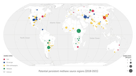 The data used in this map of the global atmospheric methane average in 2021 was retrieved from the Copernicus Sentinel-5P satellite, using the WFMD retrieval algorithm developed at the University of Bremen (Schneising et al., 2023).