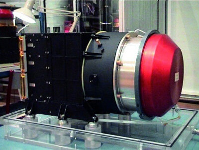 An advanced particle detector that recorded the highest energy electrons and charged particles entering it from space. The particles passed through pinholes to reach the detector, enabling it to build up a picture of where the particles came from.